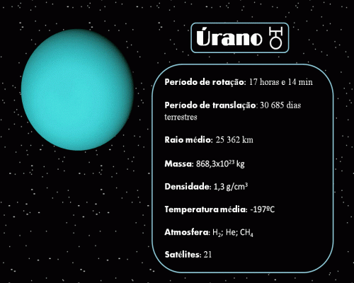 É um planeta gigante, cerca de 4 vezes maior que a Terra. Daquilo que o homem muito dificilmente conseguiu observar, vêem-se algumas faixas pouco definidas. Este planeta tem cerca de 21 satélites e 11 anéis.