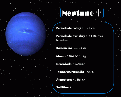 Tal como Urano, Neptuno também é cerca de 4 vezes maior que a Terra, no entanto, ao contrário do que se passa com o primeiro este planeta apresenta faixas distintas e vários pontos escuros. Neptuno tem cerca de 8 satélites como por exemplo: Tritão e Nereia, e possúi cerca de três anéis.